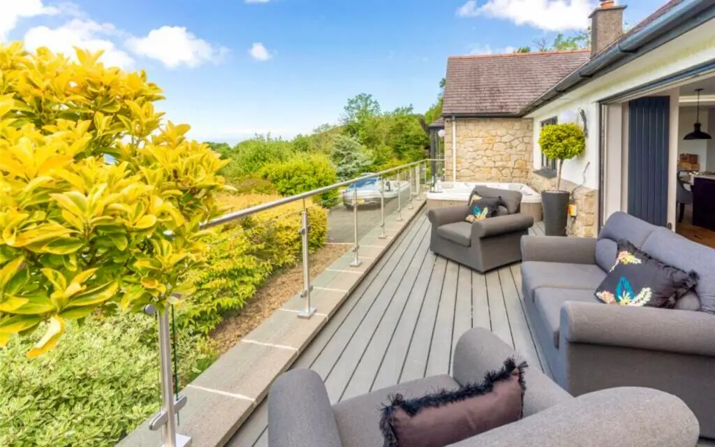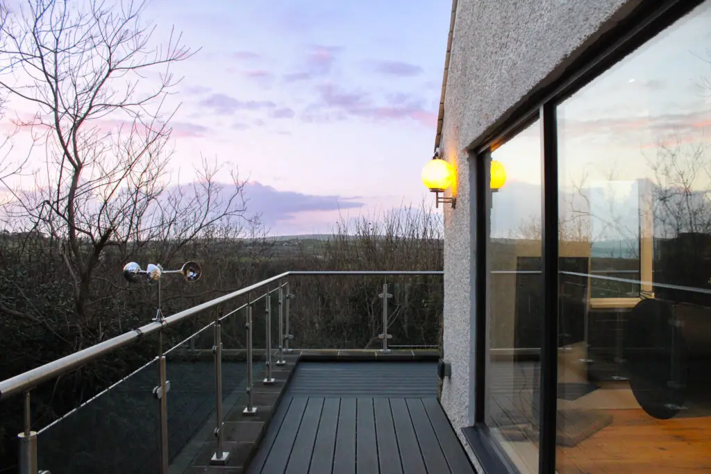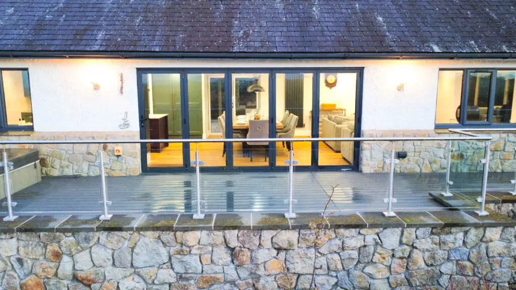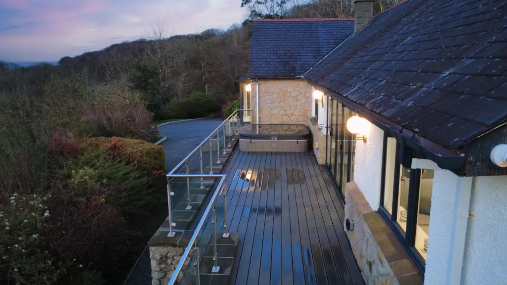 The sauna is located directly beside the pool, allowing guests to move easily between the two for a complete wellness experience. From the pool area, guests can step straight out onto the patio or onto the grass, making it easy to cool down, enjoy the fresh air, or take a quiet moment between swims.