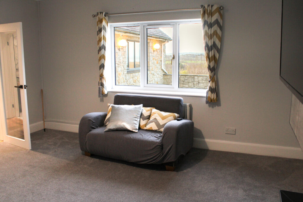 The snug at Skyline House is exactly that — a separate, self-contained space designed for slowing down and switching off. Softer and more intimate than the main living room, it’s the kind of room that gets claimed early and rarely given up.